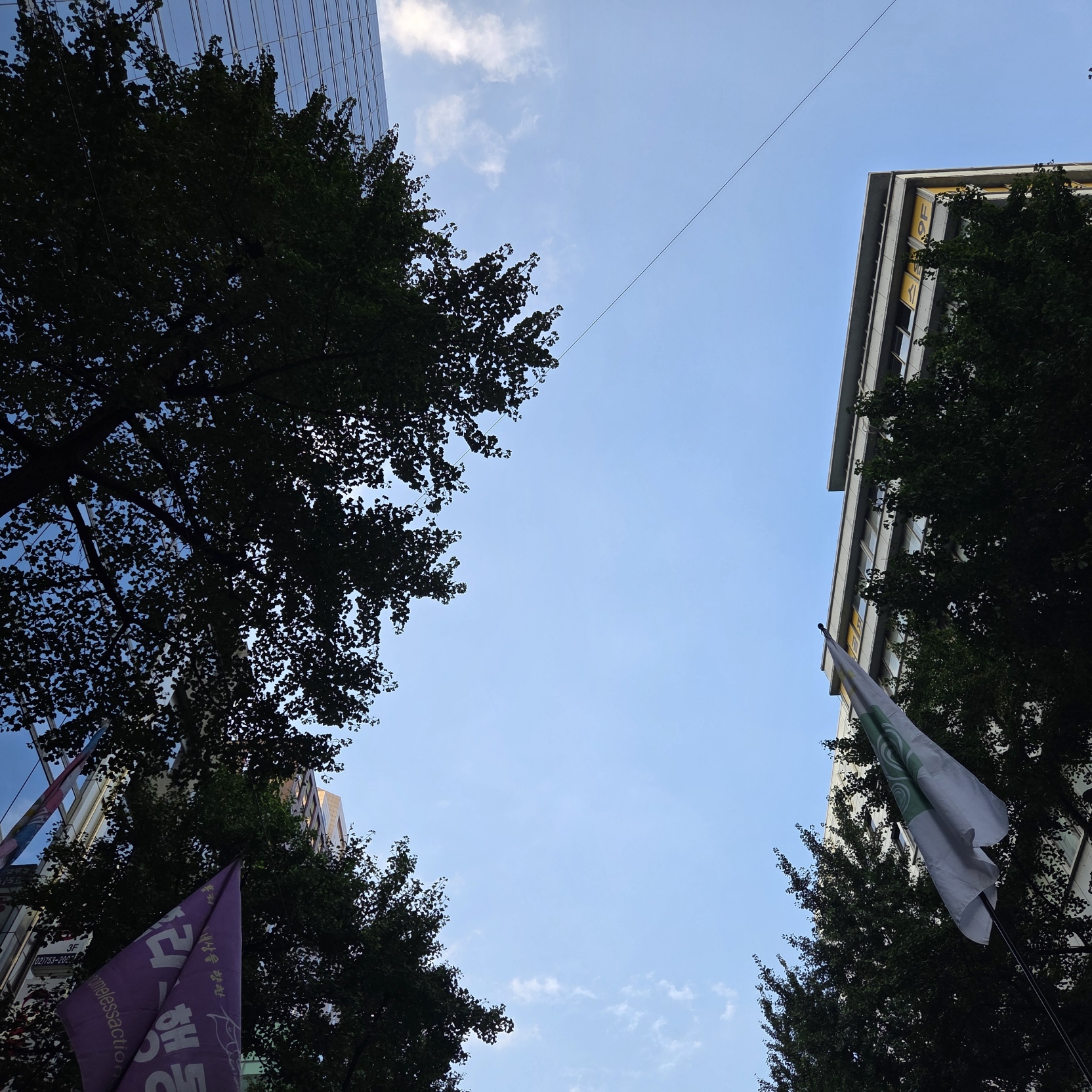 평화거점은 이스라엘 대사관 앞이었습니다. 그곳에서 “Free Free Palestine”을 외치며 다이인(die-in) 퍼포먼스를 했던 순간이 특히 기억에 남습니다. 바닥에 누워 올려다본 하늘은 그 어느 때보다 높고 맑아 잠시나마 평화롭게 느껴지긴 했어요. 하지만 이내 울려 퍼진 사이렌 소리에 정신이 번쩍 들었습니다. 여전히 어딘가에서는 전쟁이 이어지고 있고, 세상의 모든 불평등은 서로 연결되어 있기에 아무도 안전할 수 없다는 생각을 했지요。