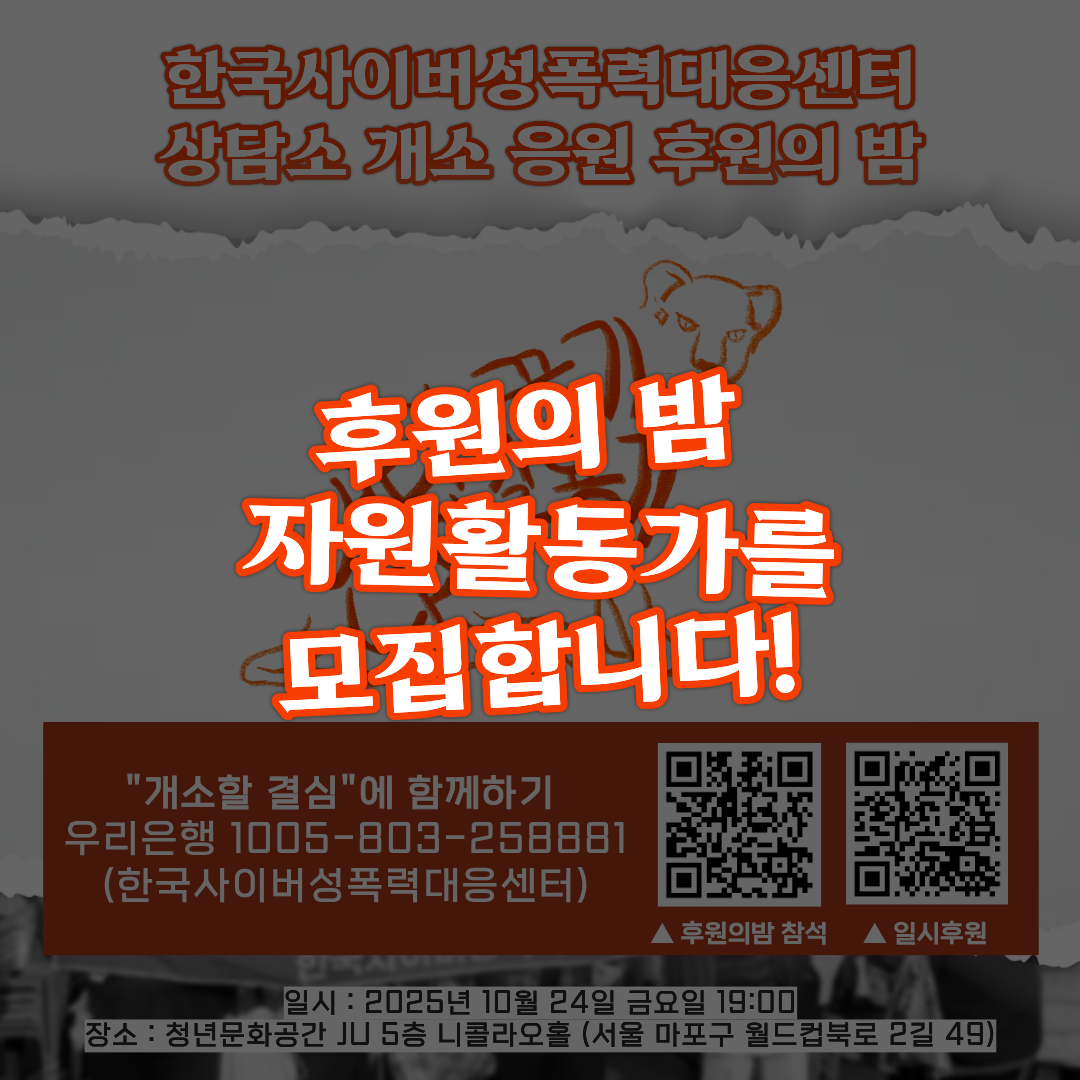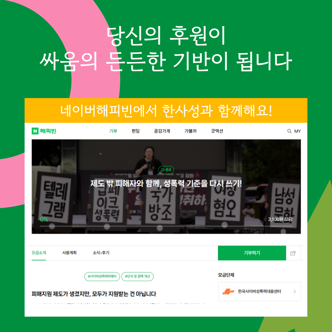 ✨후원계좌 : 우리은행 1005-803-258881(한국사이버성폭력대응센터)