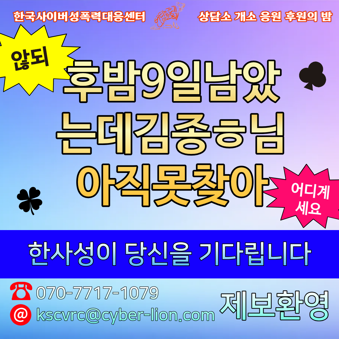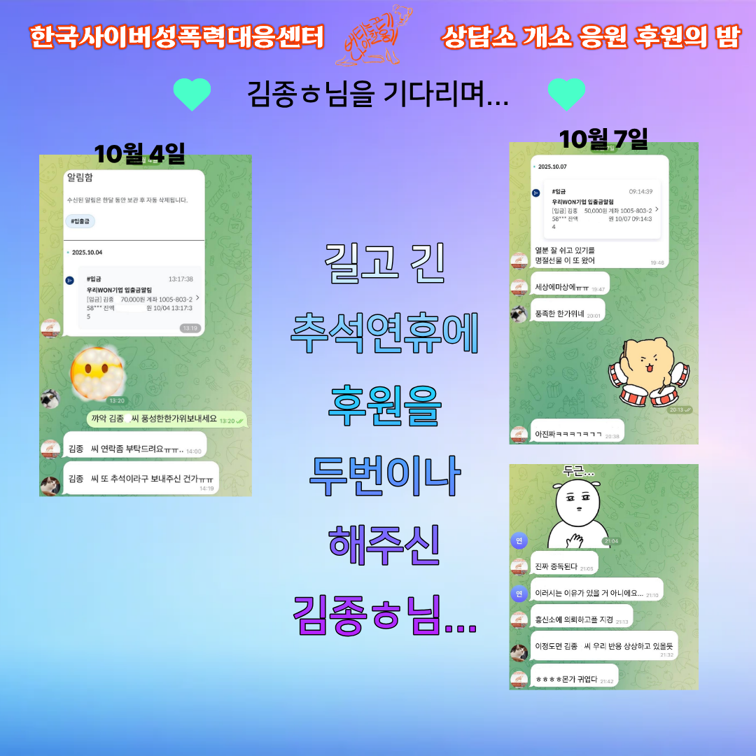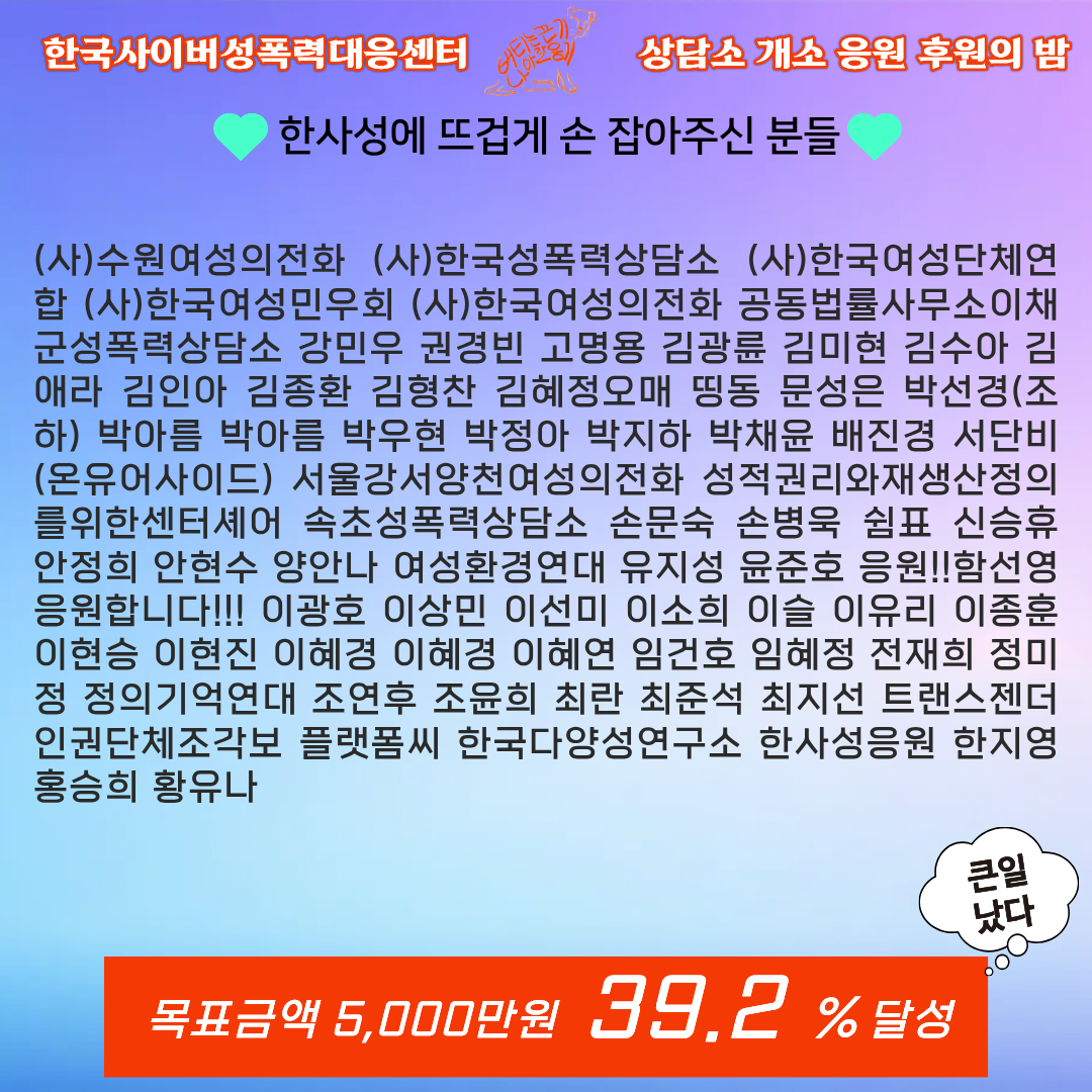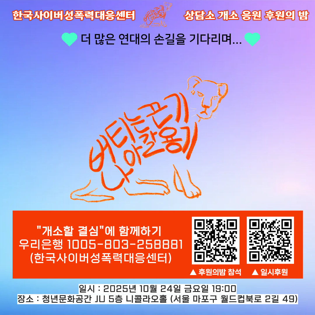✨후원계좌 : 우리은행 1005-803-258881(한국사이버성폭력대응센터)