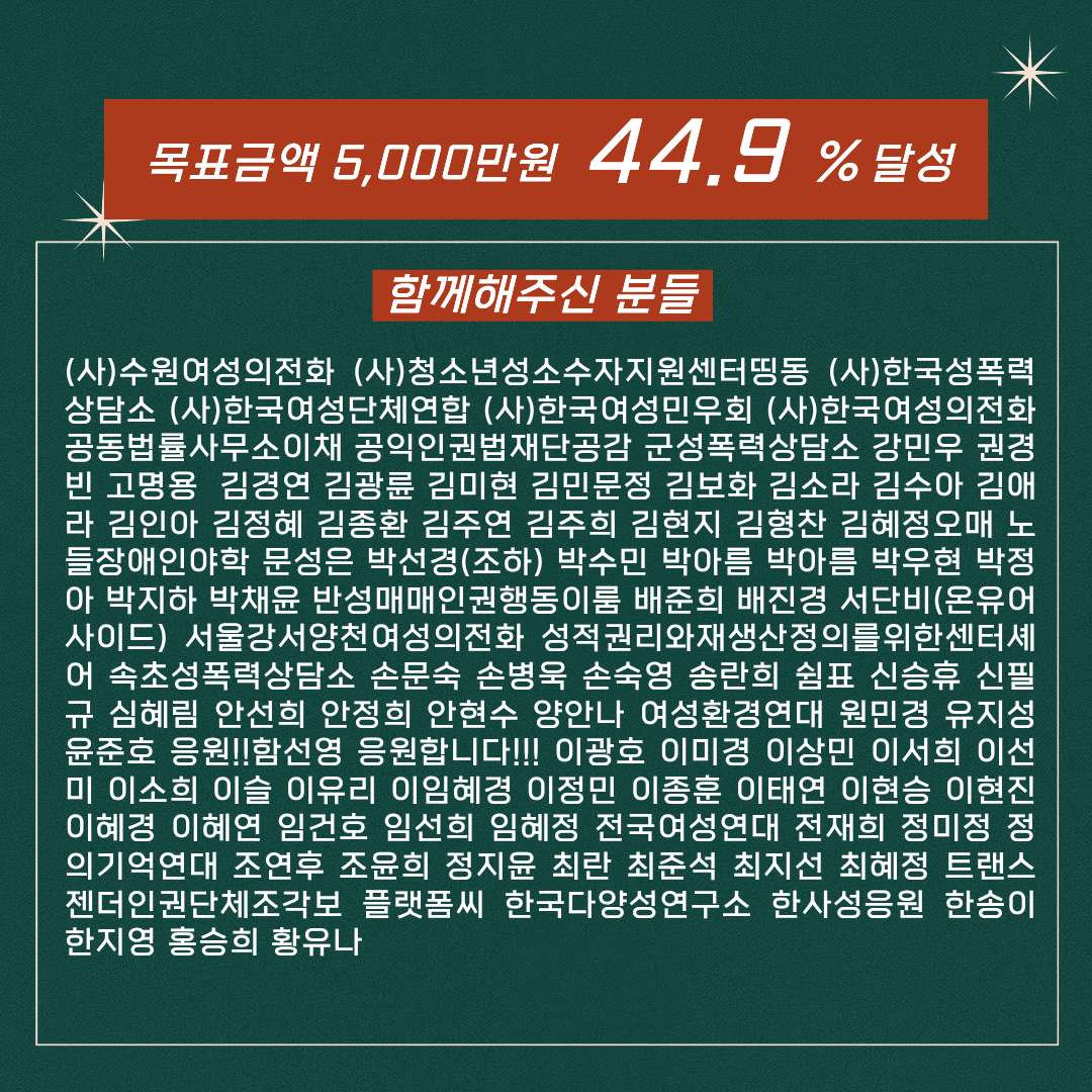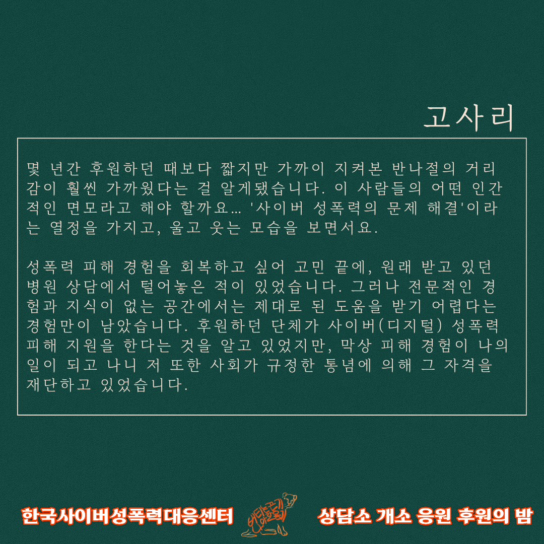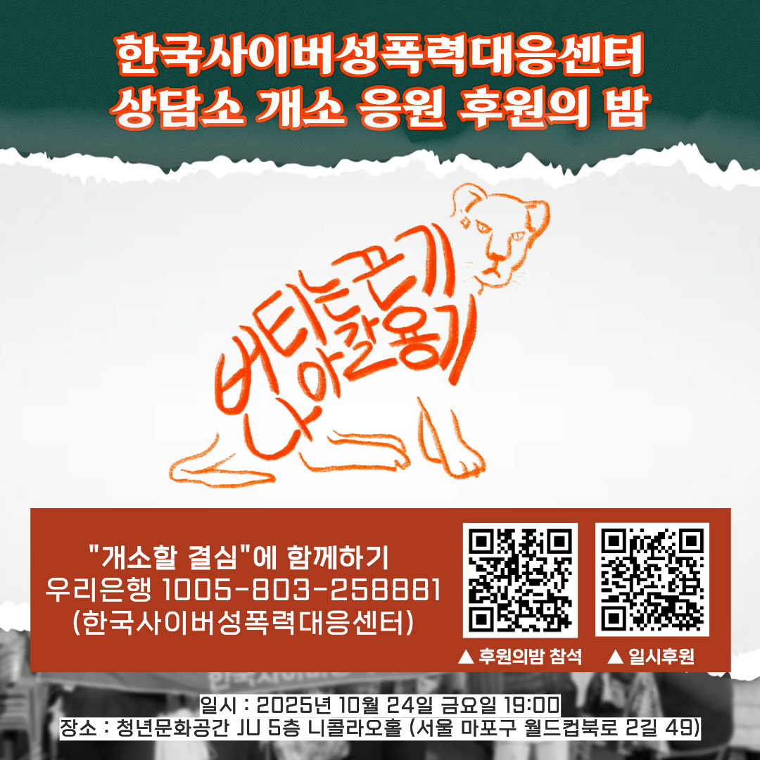 ✨후원계좌 : 우리은행 1005-803-258881(한국사이버성폭력대응센터)